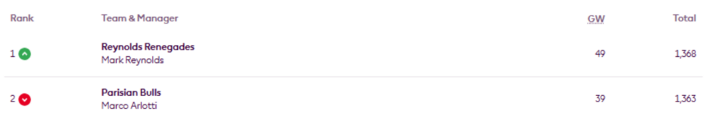 Meanwhile, Mark Reynolds (MIR) captained Bruno Fernandes (£9.5m) and regained the lead in the FFScout Mods & Cons mini-league, which he’d previously led between Gameweeks 15 and 20.