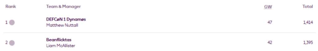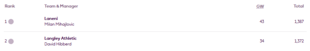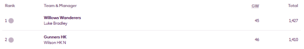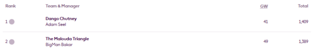 Furthermore, he leads PDM’s Top 1k Any season mini-league (code rcxj6b) for a fifth successive occasion and for the seventh time this season.