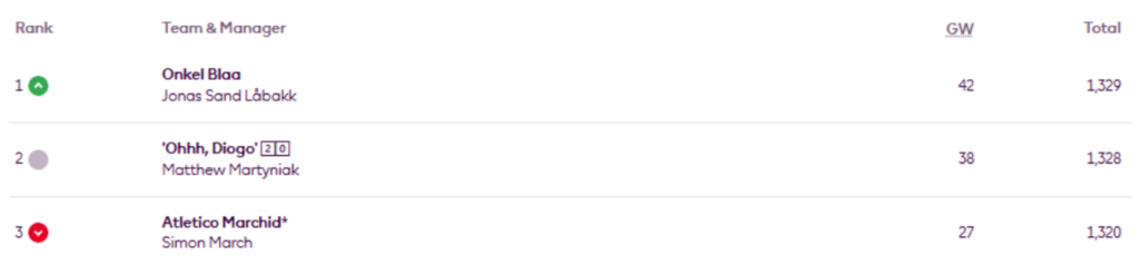 2023/24 FPL Champion Jonas Sand Låbakk moves on top of the pile in Simon March’s FPL Champions League.
