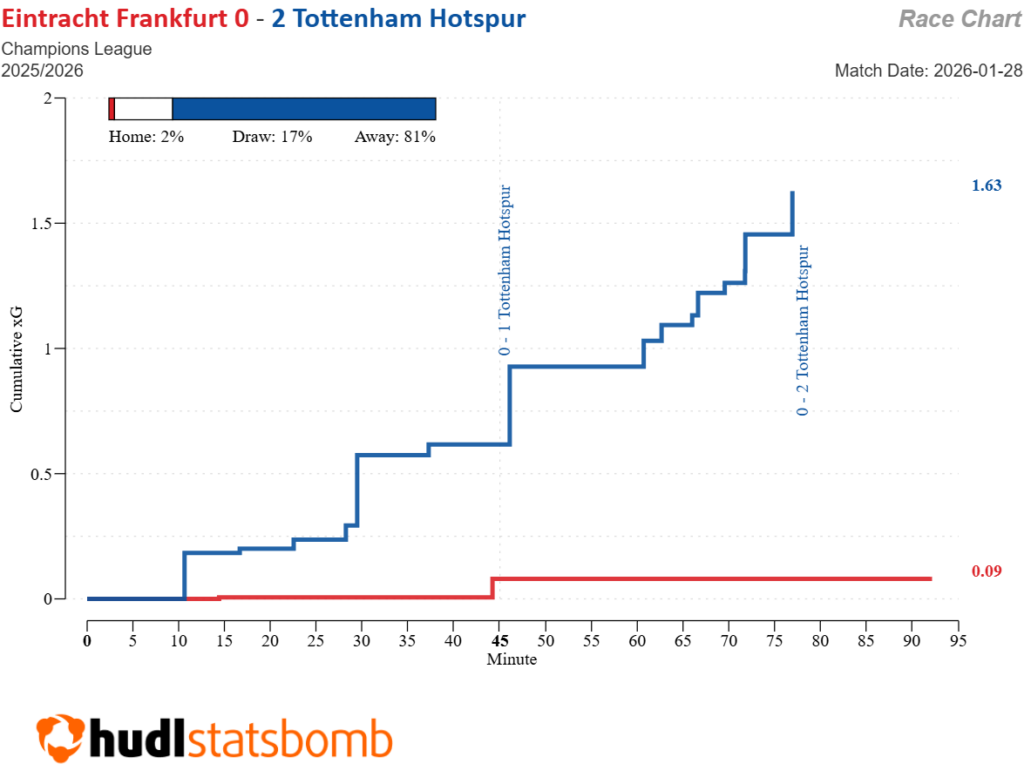 | Tottenham Hotspur | Eintracht Frankfurt (h) | 0-2 win | Kolo Muani, Solanke | Romero |