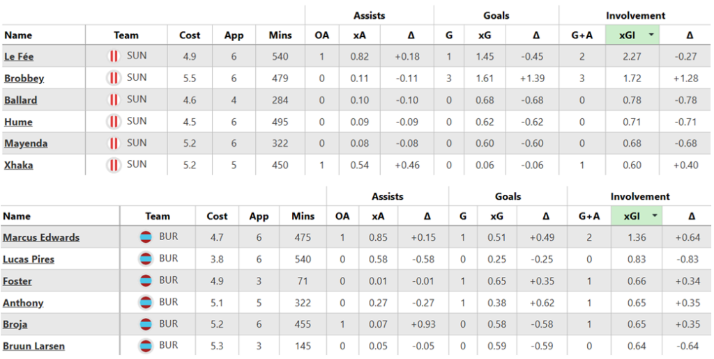 Over their last six Gameweeks, these are both sides’ best players for expected goal involvement (xGI):