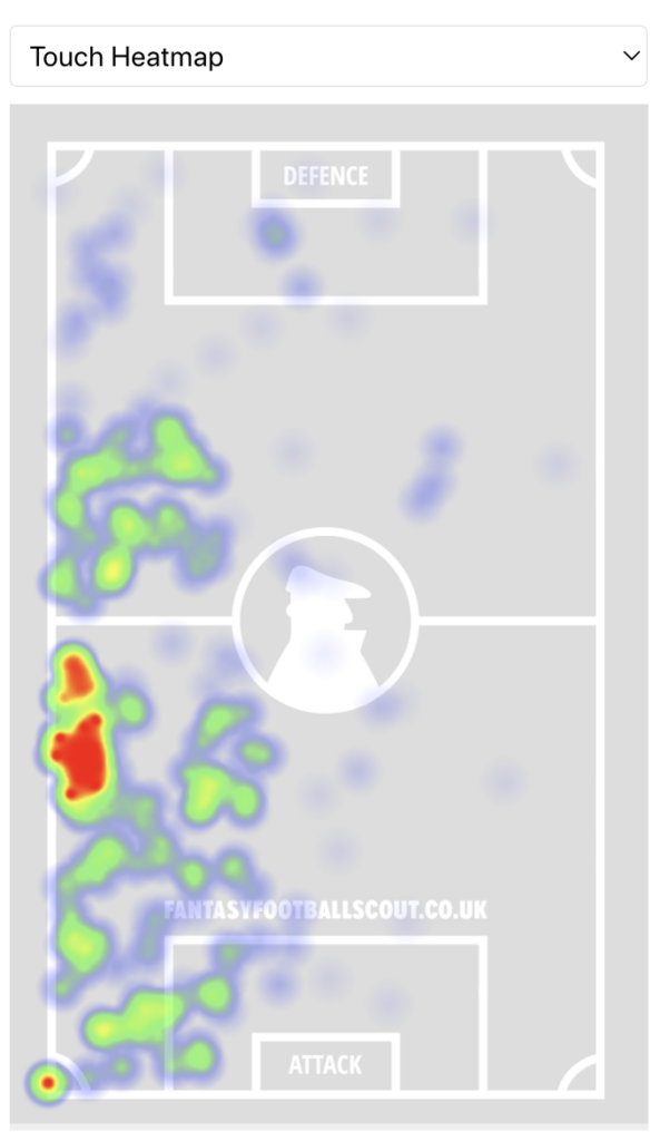 Above: Jarrod Bowen’s touch heatmap over the last four Gameweeks