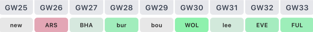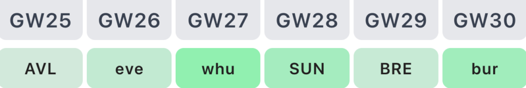 Keith Andrews’ side have some pretty tough fixtures ahead, but starting from Gameweek 27, they enter a very favourable run of matches, at which point Thiago becomes an easy ‘buy’.