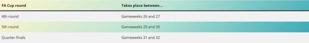 Meanwhile, we won’t know which teams have blanks and doubles due to the FA Cup for even longer. Not until just before Gameweek 32 will we know which four clubs will make the semi-finals and blank in Gameweek 34.