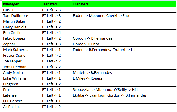 I want to replace at least Gruno this week, but then I'll have a bench headache (Wilson EVE H). Madueke maybe? If not, I'll just get Timber and gamble on trip ARS defence.