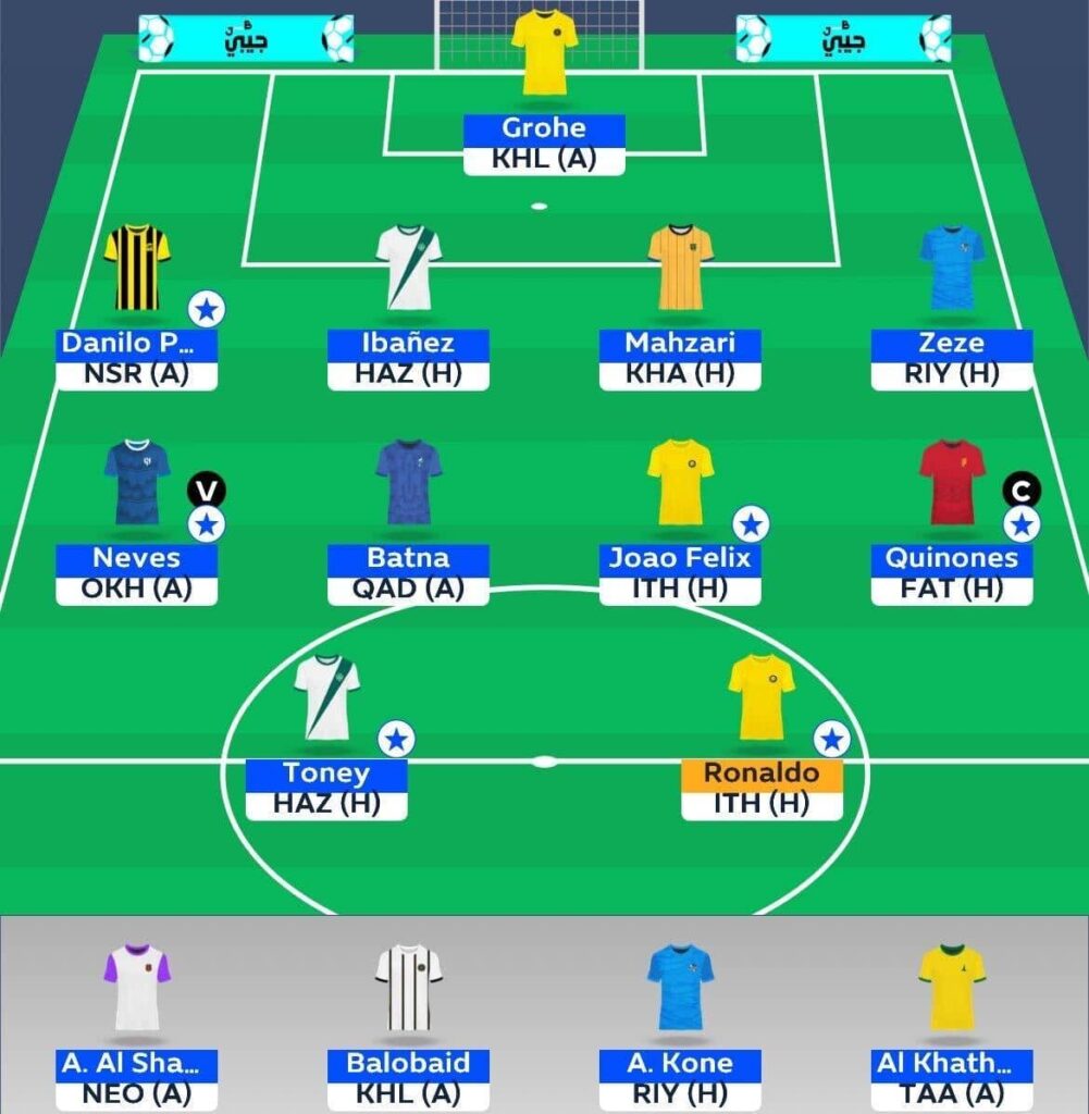 - I stick with João Félix, Mourad Batna, Julian Quinones, and Rúben Neves in midfield.