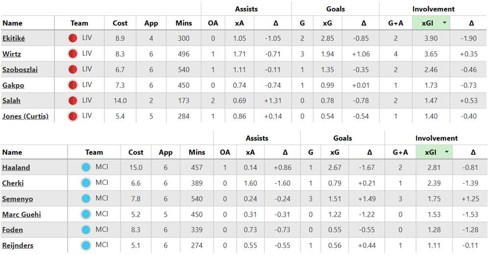 Over their last six Gameweeks, these are both sides’ best players for expected goal involvement (xGI):
