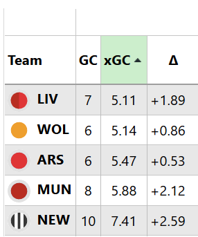 However, the expected goals conceded (xGC) data suggests they’ve been lucky in that respect: