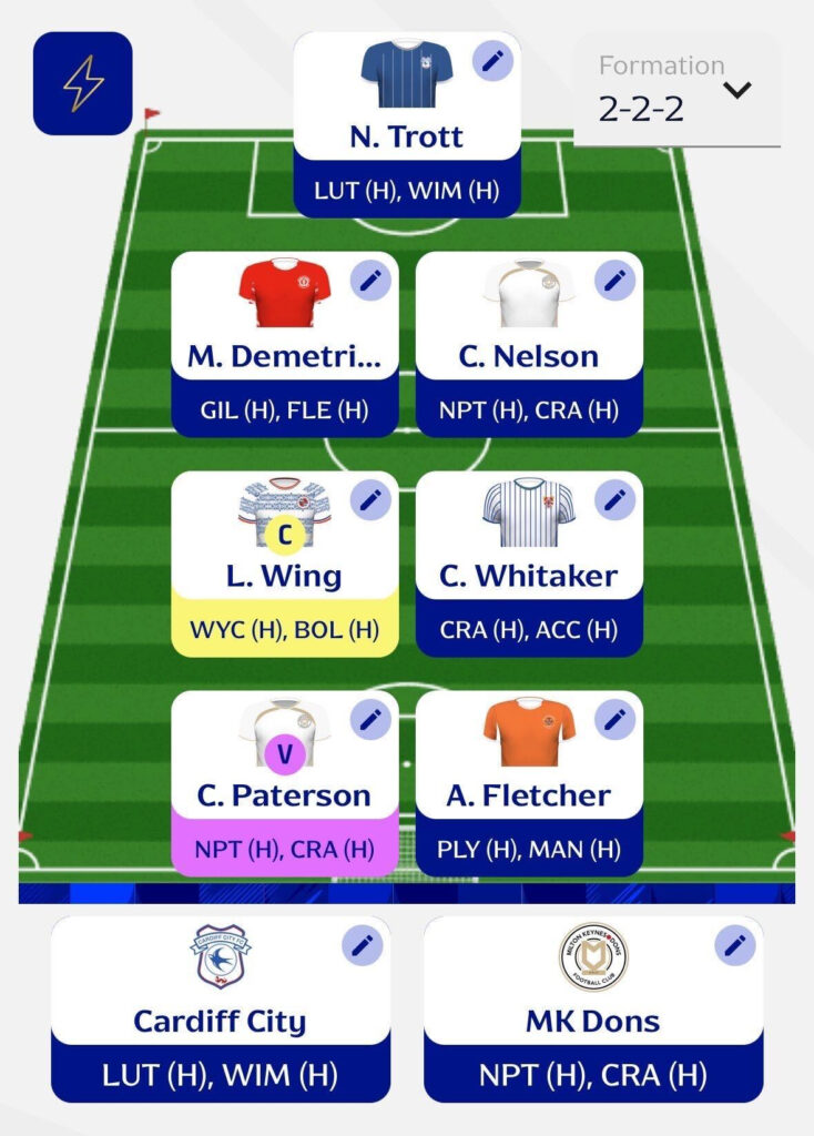 - For team selections, I’ve gone with MK Dons and Cardiff City. Both sides have strong fixtures on paper and look well placed to pick up maximum points.