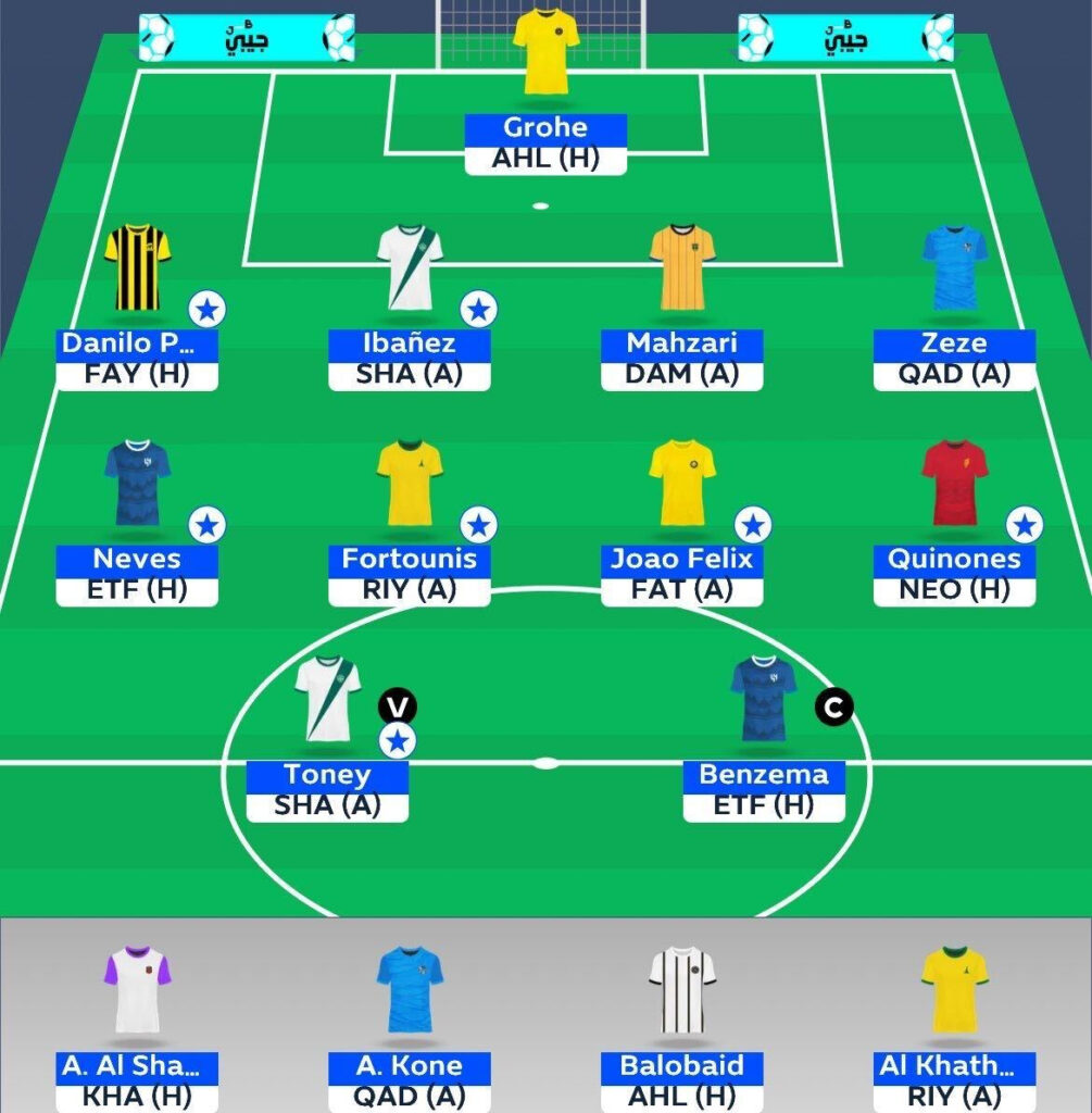 - Muhannad Shanqeeti’s recent half-time substitutions have created an issue I’m looking to address this week. I’m exploring a sideways move to upgrade to Danilo Pereira, who stands out as the best defensive option for Al Ittihad and is a player I’m planning to hold through to DGW27.