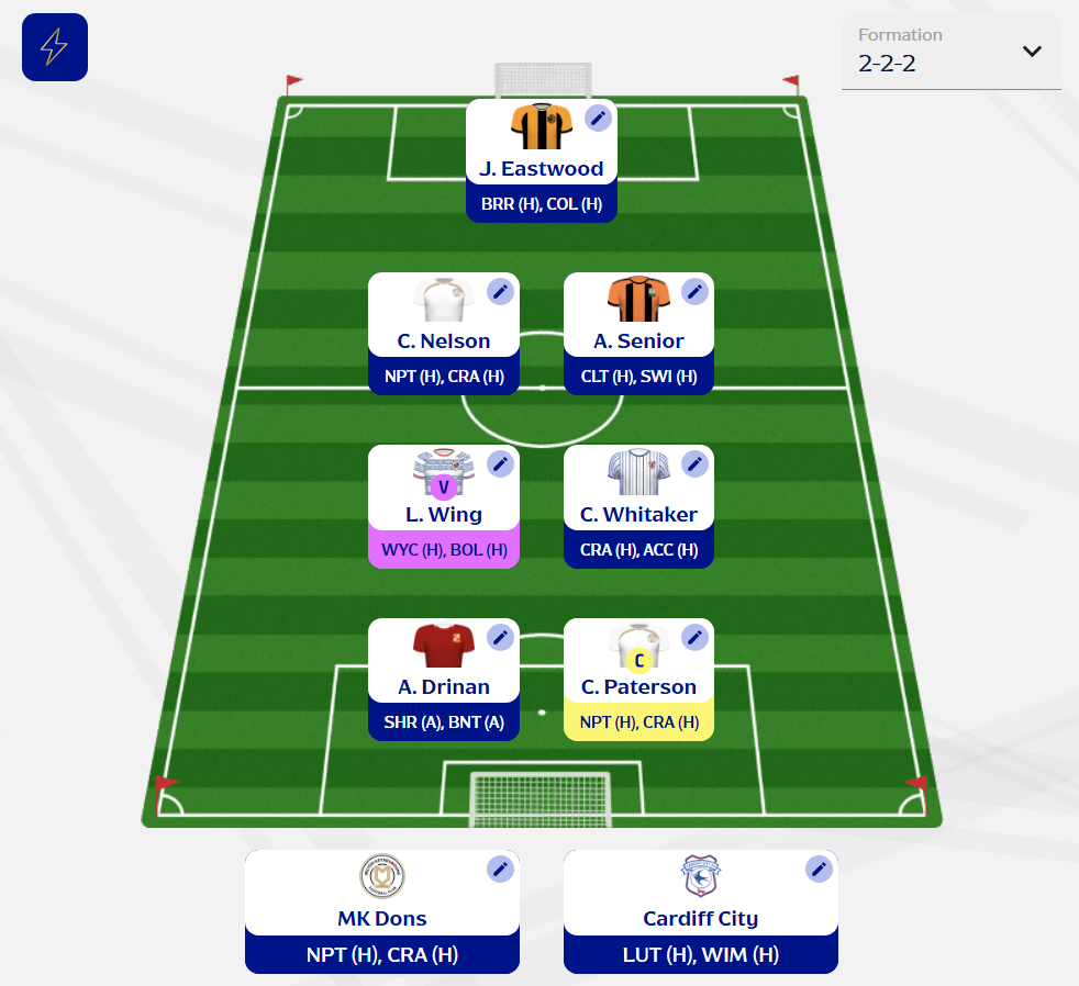 Covering the MK Dons defence makes plenty of sense this round, and Curtis Nelson stands out as the best route in. He’s combined clean sheets, defensive action points and even chipped in with a goal. All four of our experts selected Nelson ahead of the new round.