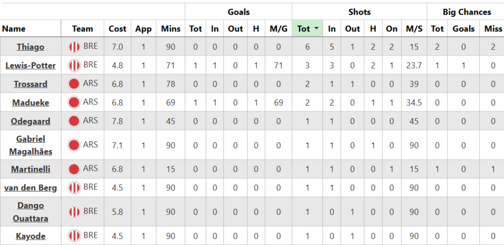 He topped the shot count at the Gtech, seeing two great opportunities saved by David Raya (£5.9m) – the efforts were too close to him, in truth – and then blazing over another big chance later in the game.