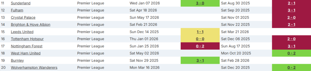 That’s 14 points from a possible 39 against the teams currently 11th and below. The Bees have gained 26 points from a possible 39 against the top half.
