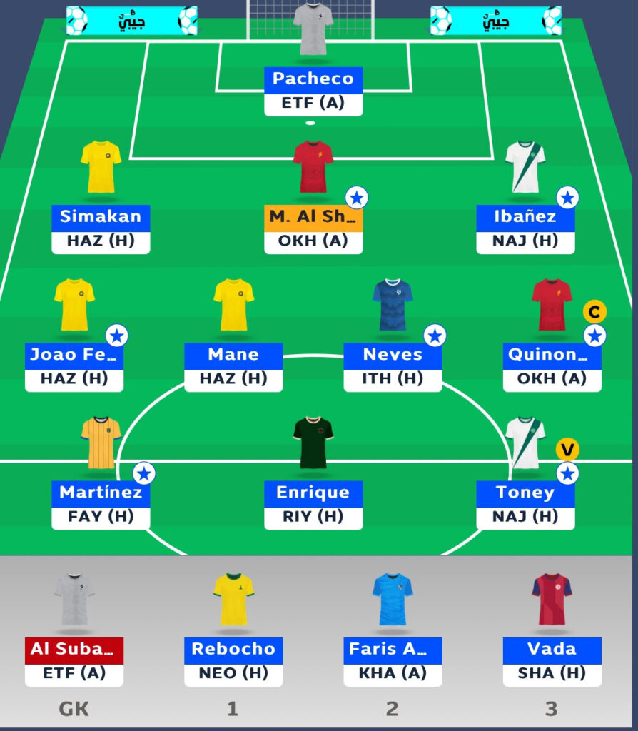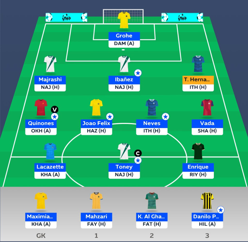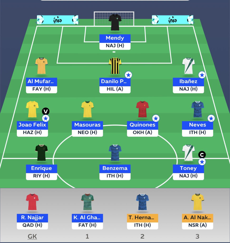 - At the back, I line up with Roger Ibañez, Danilo Pereira, Álvarez and Saad Balobaid. There’s clean-sheet potential across the board, plus threat from set pieces.