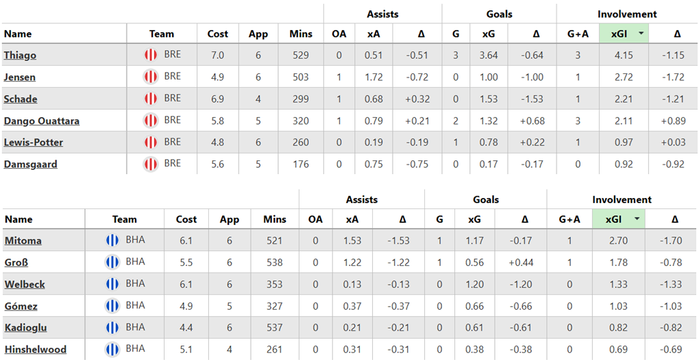 Over their last six Gameweeks, these are both sides’ best players for expected goal involvement (xGI):