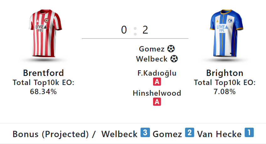 Meanwhile, the goals, assists and bonus summaries are from LiveFPL.