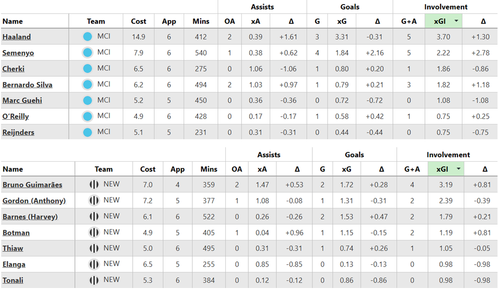 Over their last six Gameweeks, these are both sides’ best players for expected goal involvement (xGI):