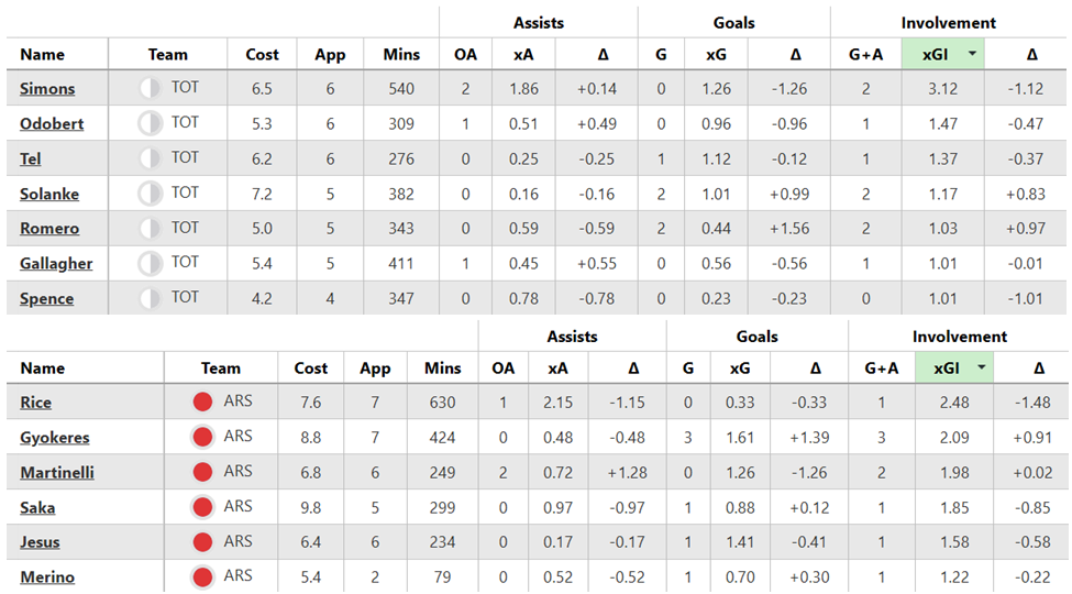 Over their last six Gameweeks, these are both sides’ best players for expected goal involvement (xGI):