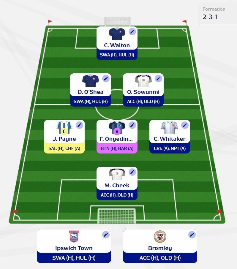 - For team picks, I’ve gone with Ipswich and Bromley. They have the strongest fixtures among the sides with a double, so it makes sense to back them.