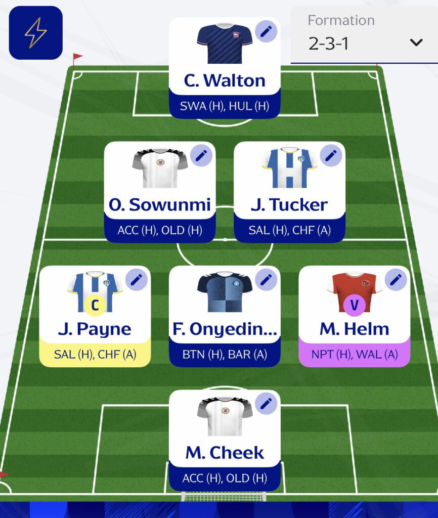 - In midfield, Jack Payne picks himself on current form. A recent hat-trick and penalty duties make him the standout option, and I’m confident he can deliver again. Fred Onyedinma has two decent fixtures to build on his 14 goal contributions this season, so he stays in. I’m also backing differential Mark Helm, who has three goals in his last four matches and looks full of confidence.