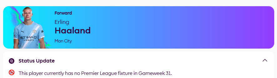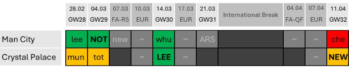 As it stands, Manchester City and Crystal Palace don’t have a Gameweek 31 fixture.