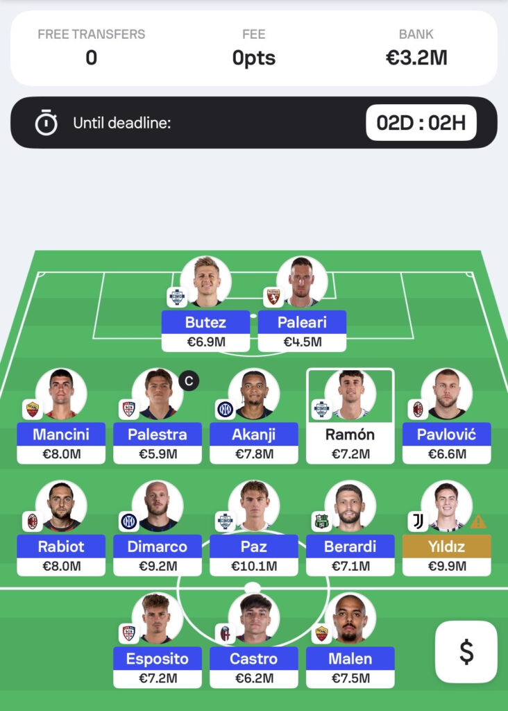 - Despite the number of flags in my squad, I don’t feel the need to make a transfer this week. Torbjorn Heggem is back training with the team, Moise Kean looks fine and remains in outstanding goalscoring form, while Matteo Gabbia still has a chance of featuring against Cremonese. I’ll make a late decision on whether to sell him or hold.