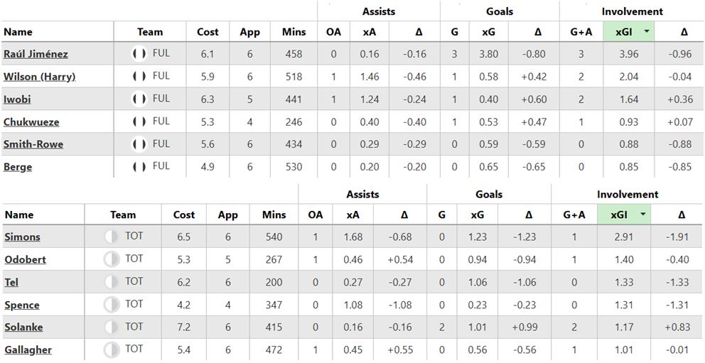 Over their last six Gameweeks, these are both sides’ best players for expected goal involvement (xGI):