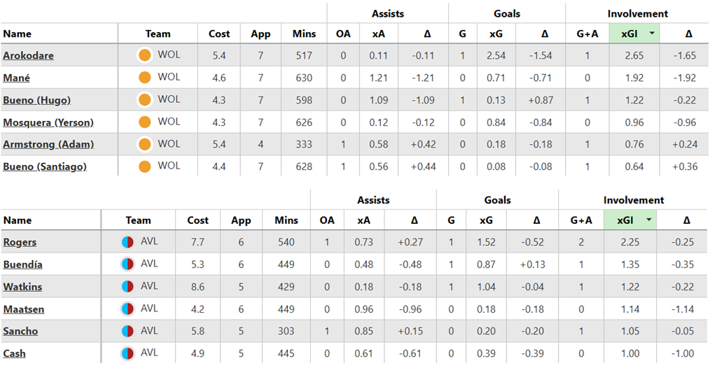 Over their last six Gameweeks, these are both sides’ best players for expected goal involvement (xGI):