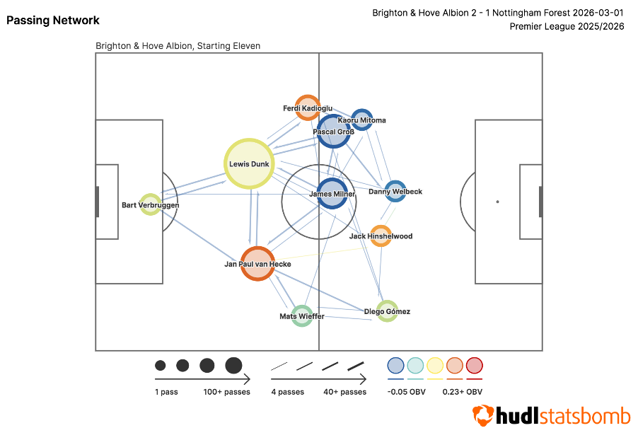 Hurzeler went with the same starting XI that he used in the 2-0 win at Brentford, with Jack Hinshelwood (£5.1m) once again taking up the more advanced No 10 role.