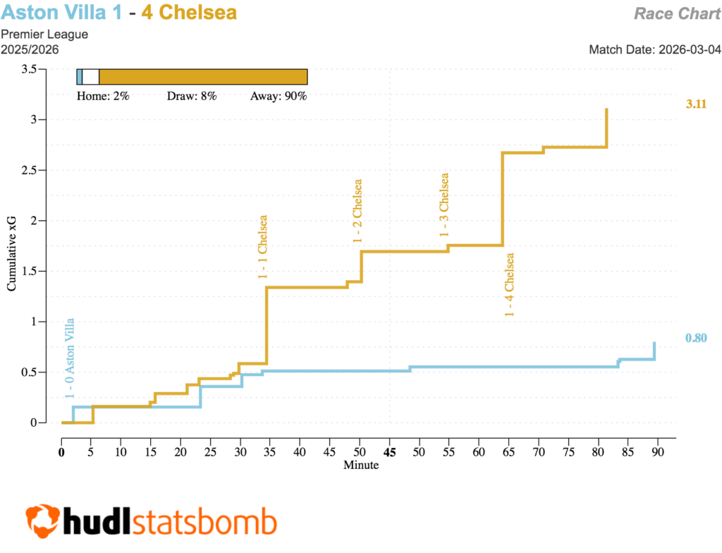However, Villa’s fragilities were on show throughout, as they conceded 3.11 xG.
