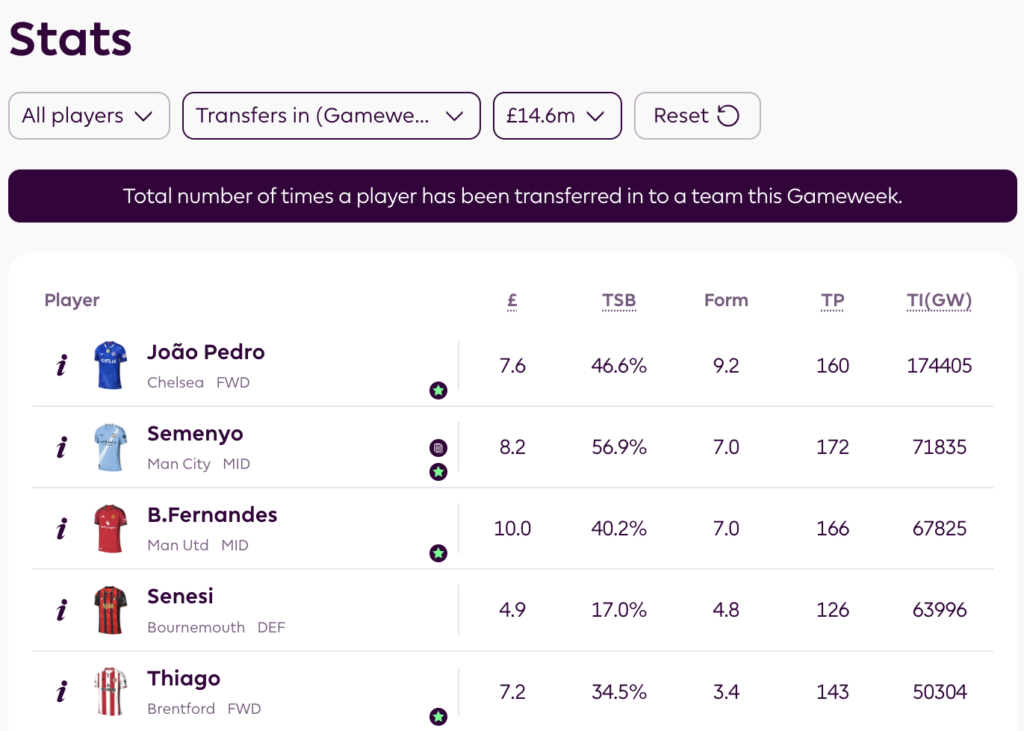 At the time of writing, Pedro’s exploits have earned him over 174,000 transfers in ahead of Gameweek 30 (see image below), despite more than 617,000 managers deciding to sell him over the previous two Gameweeks!