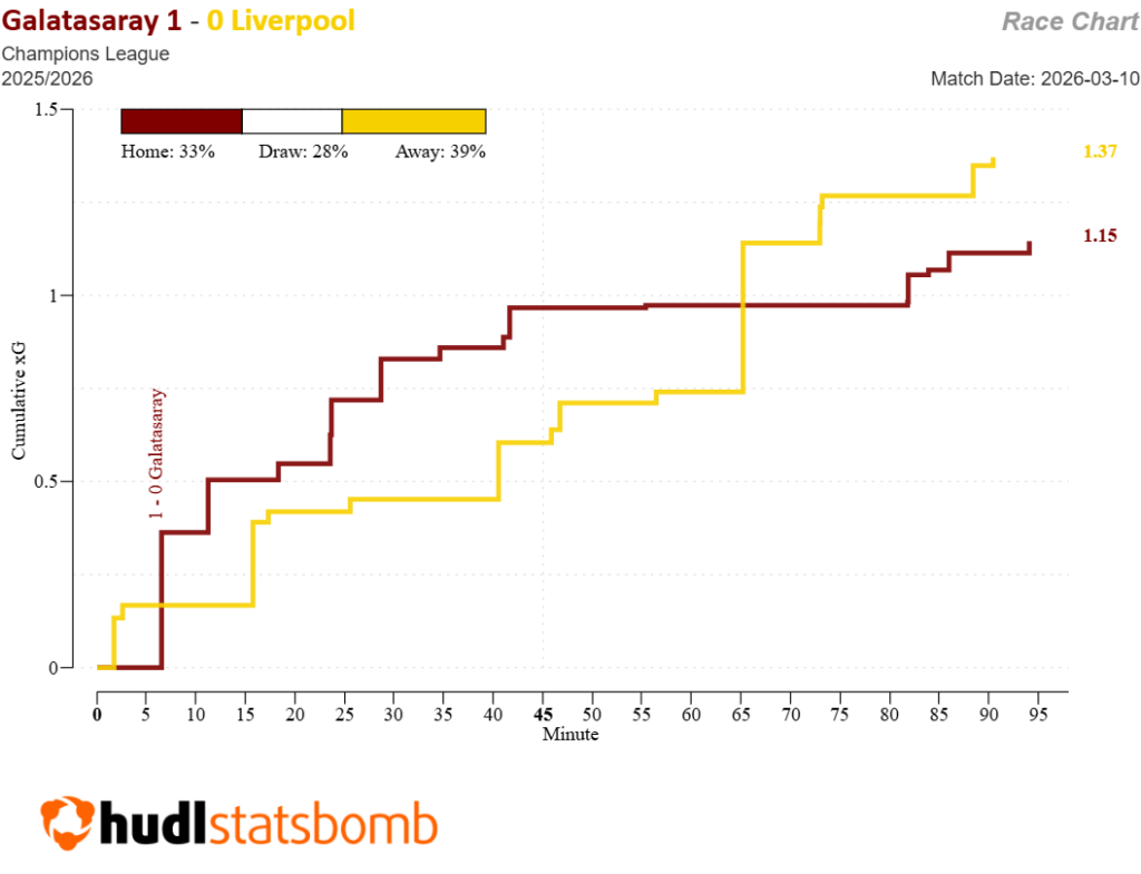 It’d be wrong to just focus on the goalkeeper, though. Another slip, this time by van de Ven, set up goal number two for Atletico, who later added further strikes from a set piece and a counter-attack. The Spanish side didn’t even have a shot after the 55th minute, yet still racked up 2.65 xG: