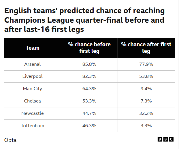 Here’s the ‘before and after’ predicted chances of progress, courtesy of Opta and the BBC.
