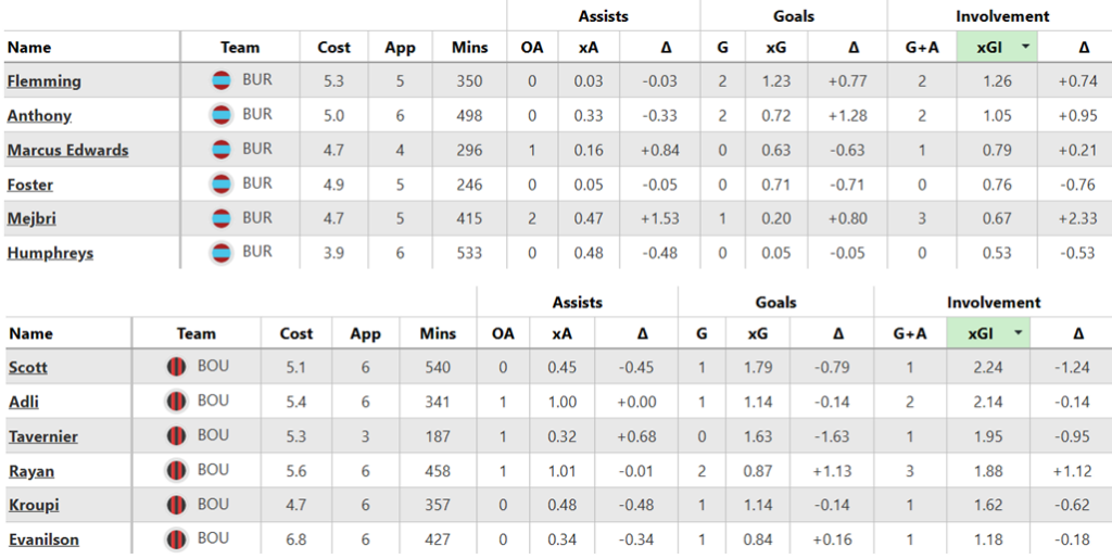 Over their last six Gameweeks, these are both sides’ best players for expected goal involvement (xGI):