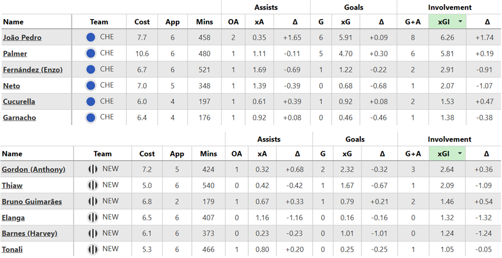 Over their last six Gameweeks, these are both sides’ best players for expected goal involvement (xGI):