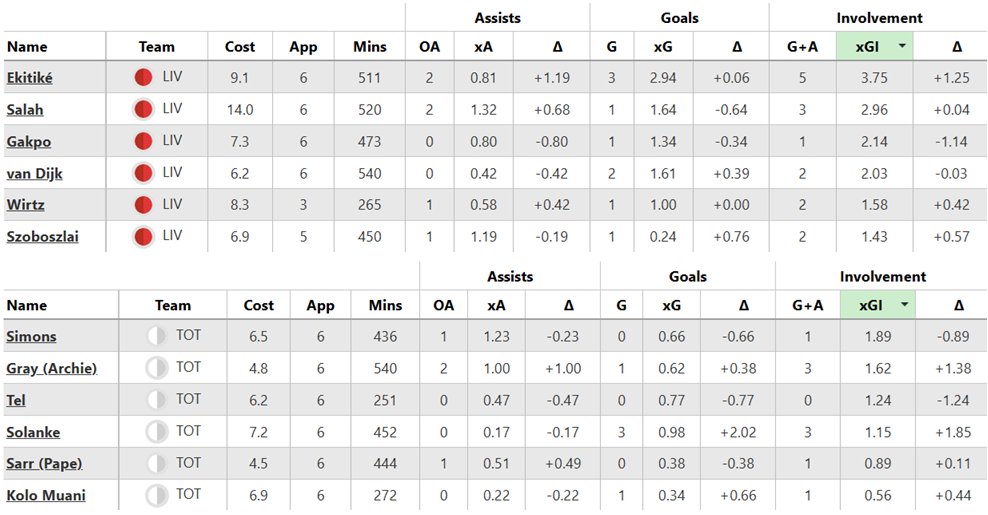 Over their last six Gameweeks, these are both sides’ best players for expected goal involvement (xGI):
