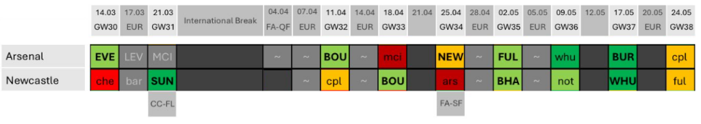 The Gunners’ progress makes it now very likely that Arsenal and Newcastle United will double in Gameweek 33 and blank in Gameweek 34.