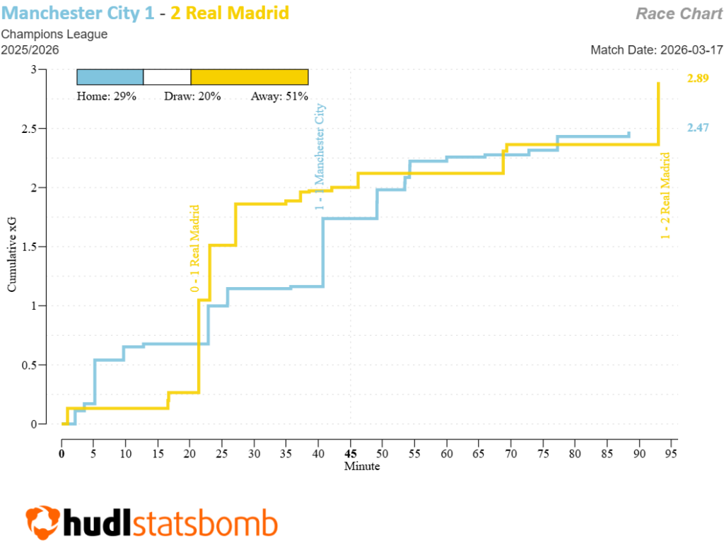 Playing with a man fewer for 70 minutes, City conjured an impressive 22 shots to Madrid’s 14.