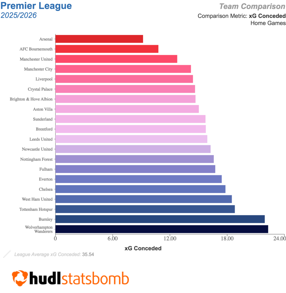 Indeed, Andoni Iraola’s side rank second for xGC on home turf: