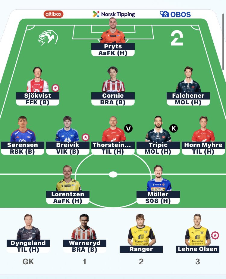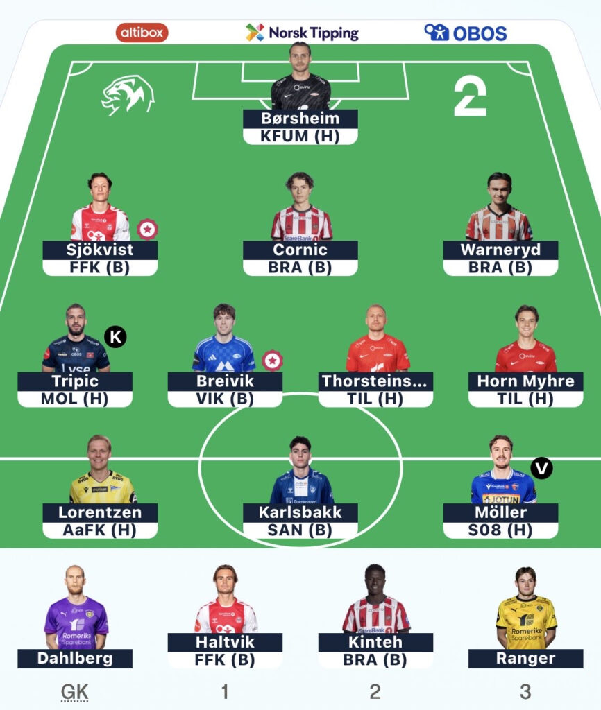 - With Lillestrøm blanking this week, Thomas Lehne Olsen moves to the bench. After his brace last time out, he looks like a top asset – especially with a double gameweek on the horizon.