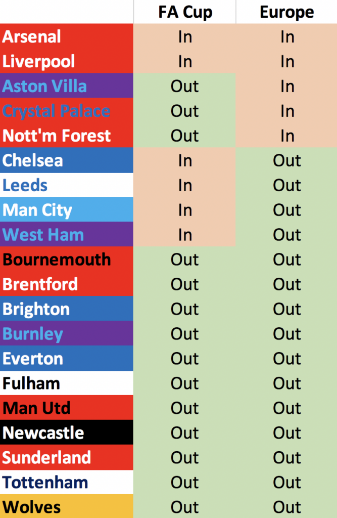 Spurs are the only team within this group that can concentrate solely on the Premier League, free from any FA Cup/European distractions, at least for now.