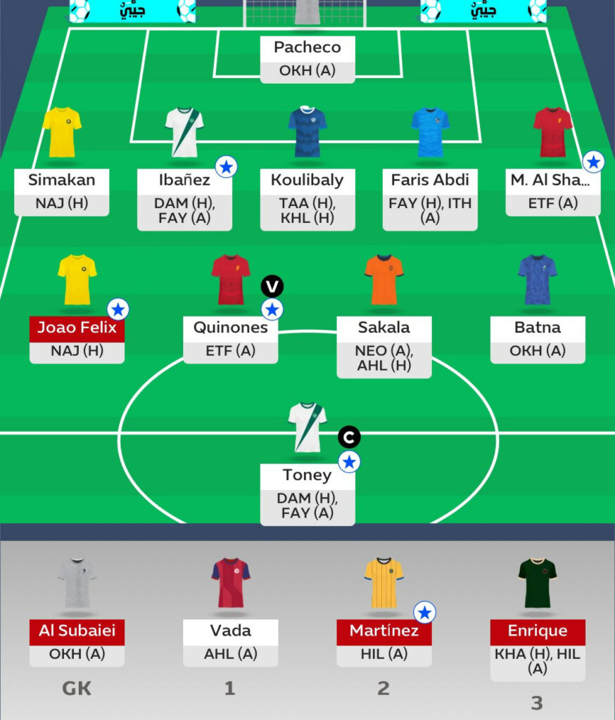 - The reasoning is fairly straightforward. Simakan is dealing with an injury, Faris Abdi hasn’t impressed across the double, and Félix isn’t expected to feature this week. Meanwhile, M. Al Shamat doesn’t have a double, which makes the move easier.