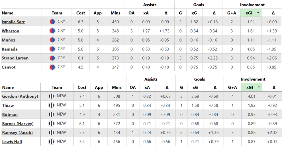 Over their last six Gameweeks, these are both sides’ best players for expected goal involvement (xGI):