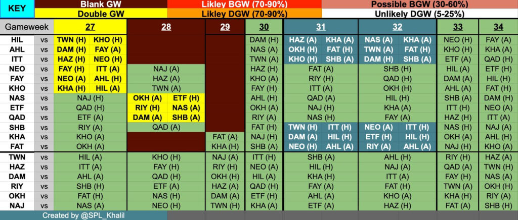 Before diving into strategy, it’s important to understand the schedule. @SPL_Khalil has kindly provided a fixture chart to help map everything out.