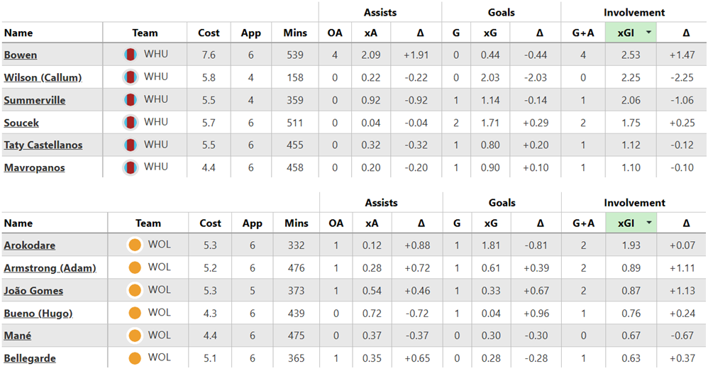 Over their last six Gameweeks, these are both sides’ best players for expected goal involvement (xGI):