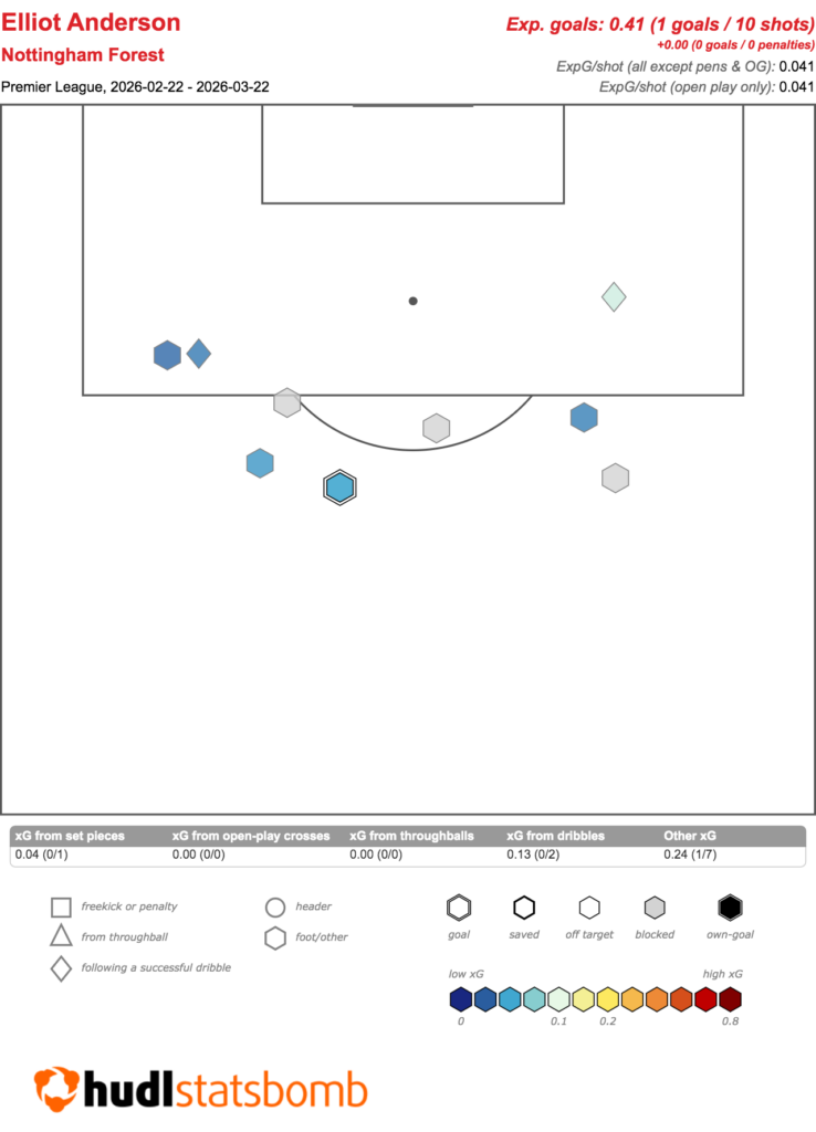 Furthermore, no Forest midfielder can better his rate of minutes per goal, shot, shot in the box or expected goal (xG).