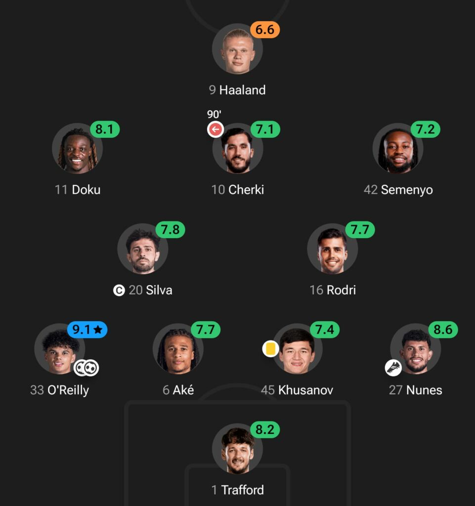 Guardiola has dropped his ‘two up front’ experiment in the last two cup games. Because of that, we’ve seen an improvement in Haaland’s output. This came to the fore in the game against Liverpool. Antoine Semenyo (£8.2m) wasn’t as central as before and held the width to a large extent, which is shown in his expected assists (xA) numbers. O’Reilly’s ceiling is just really high, as was visible in the game against Arsenal, and he even had a couple of assists against Liverpool. He’s just a lock whichever way you look at things.