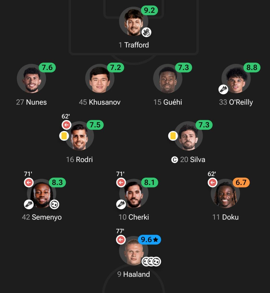 In my opinion, Erling Haaland (£14.4m) and Nico O’Reilly (£5.0m) are pretty locked in as picks for anyone who wants to go there. O’Reilly is joint top with Virgil van Dijk (£6.3m) for big chances in the last six matches and despite playing as a full-back, his role as a box crasher remained in both the cup games. Let me cite some stats for some of the picks.