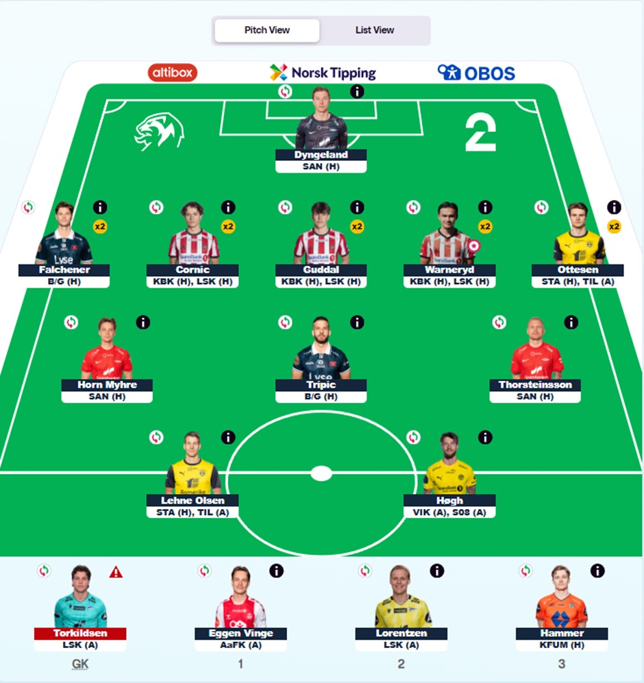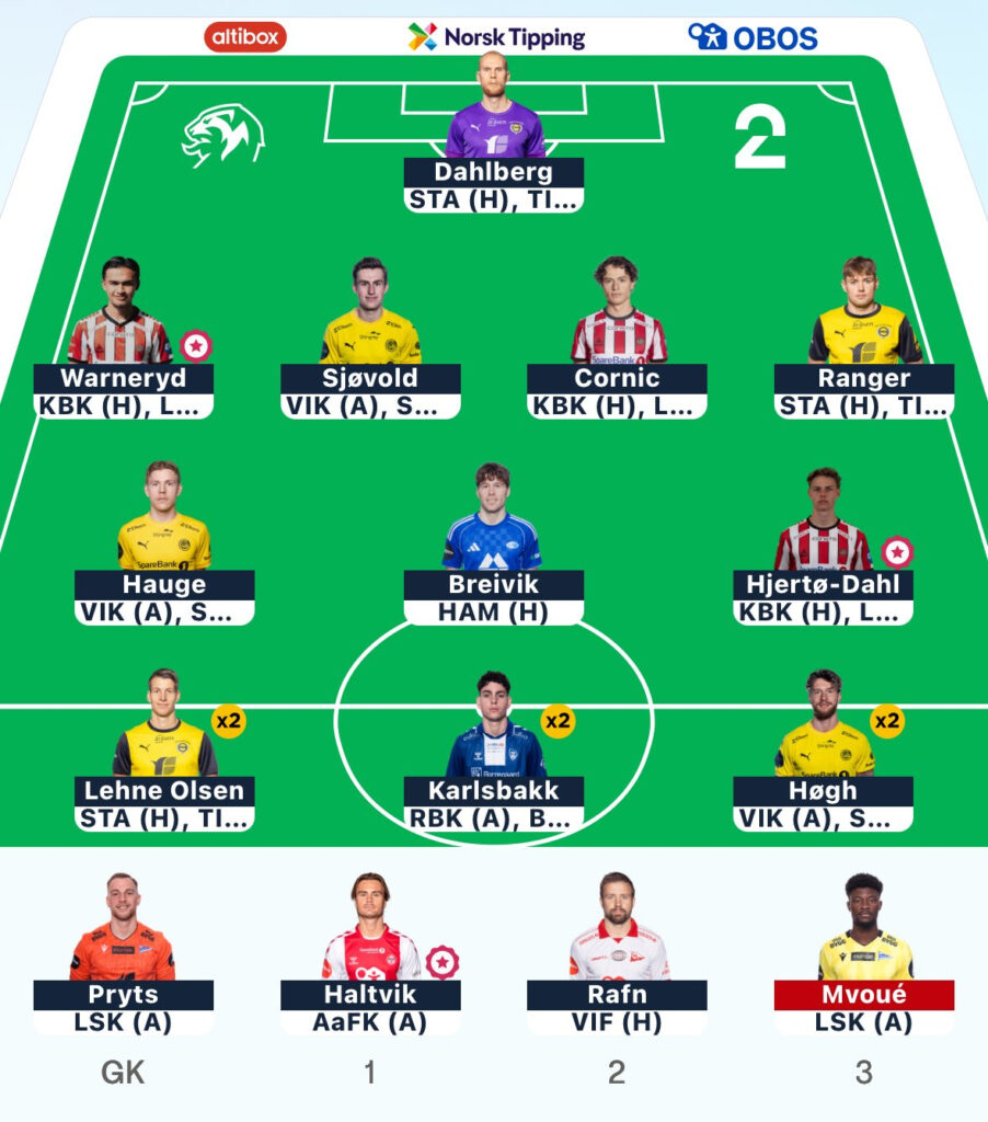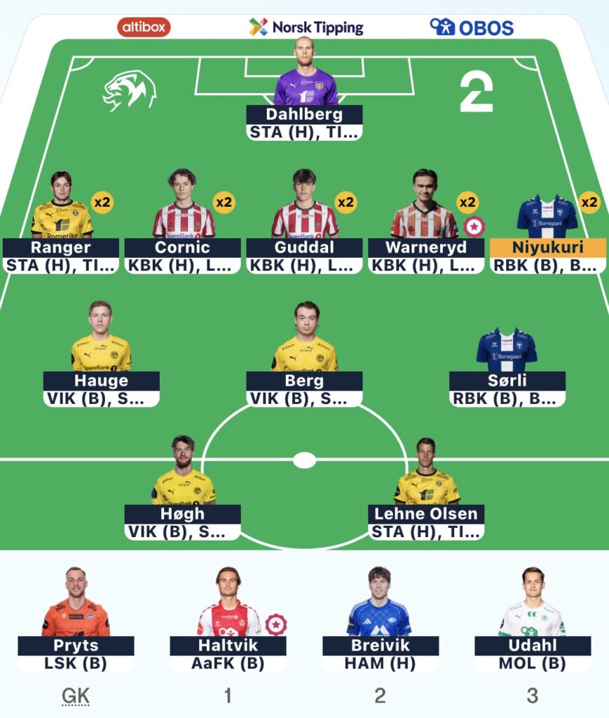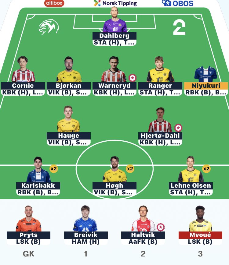- I originally brought in Niyukuri for his attacking threat, so I don’t really want to swap him for another Sarpsborg 08 defender. Instead, I’m looking at moving him to a second Lillestrøm defender. I actually considered doubling up on Lillestrøm at the wildcard, but outside of Lars Ranger, the minutes felt uncertain. This week is different. We’ll get the lineup ahead of the better fixture in the double, the home game against Start, so I can make a more informed call on who to bring in.