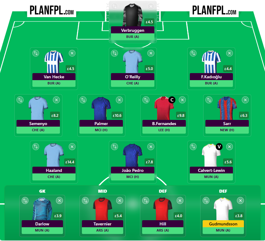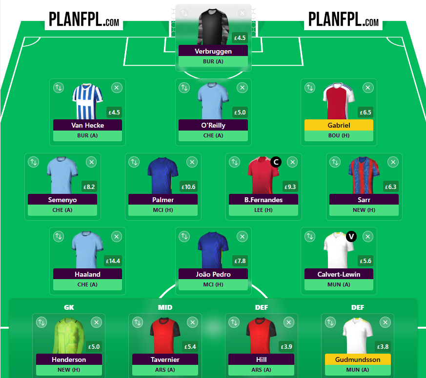 The plan is to get O'Reilly in for Guehi for this GW. For GW33 then transfer out Gudmundsson and Ekitike for Van Hecke and JP/DCL and use BB chip as I have 15 playing players and 7 players with DGW. Then in gw34 I transfer out Van Hecke and JP/DCL and have 11 playing players for that gw. Will use TC in gw36. All fine with my plans? Would you go with JP or DCL for dgw33?